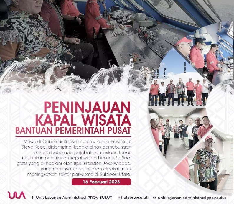 Kepel ditugaskan Gubernur Olly untuk mengawal proses hibah kapal tersebut. "Saya bersama kepala instansi, yang mewakili Pak Gubernur dan Pak Wagub sudah melakukan peninjauan keberadaan kapal wisata jenis Bottom Glass di Likupang,” kata Steve Kepel, Minggu (19/2/2023).